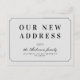 Announce your change of home address to family and friends with this simple retro black and white design of script lettering and a black classic frame.