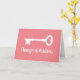Change of address moving card with vintage key silhouette. Elegant greeting card to inform people your have moved to a new home. Also great for real estate, business relocation or new company address. Coral pink or custom color. Old key with heart and brush script typography.