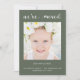 Rustic sage green and white one photo change of address card with modern typography and burlap look back of card.