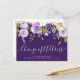 Announce your new home to family and friends with this modern design of modern script and purple flowers.
