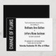Here's a bold, modern card for notifying your guests if it's become necessary to change your wedding date. Use the template fields to add your personal details and make this unique, simple design your own. A colour block along the left is black, matching the text and back of the card; "CHANGE OF PLANS" appears in bold white over this strip on the left. All fonts and colours are also editable. Please reach out with any special requests or for customizing assistance. Other pieces with alternate wording are also available in the collection.