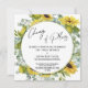 This simple suite's distinction is due to the modern, handwritten script font used for key phrases, and the beautiful floral images. In this piece, the elegant script was used to create a graphic depicting the words "Change of Plans". The text is framed in a circular wreath of watercolor sunflowers and eucalyptus. A coordinating bouquet also appears on the back. Use the template fields to add your personal details and make this modern design your own. Pieces with alternate wording are also available. Please reach out with any special requests or for customizing assistance. // 151 //
