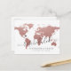 Rose Gold Pink world map destination wedding change of plans, reschedule or postponement postcard with fully editable text so you can explain as much, or as little as you like, and provide a website for guests to check for updates and changes. —— Click CUSTOMIZE FURTHER to move the heart, change the background and text colour, change fonts, or rearrange the whole thing and create your own design using our unique faux gold foil map art. —— Perfect for tropical, beach, island, city, mountain and adventure destination wedding locations all over the world. Check our designer shop for coordinating items!