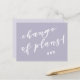 NewParkLane - Postcard, with 'Change of Plans' in elegant white brush script / calligraphy typography and three cute little hearts, against a lavender background.