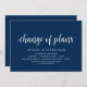 Change the date card. This is the Wedding party invitation Rescheduled (postponed / postponement) card (Change of plans), in the modern minimal simple clean design themed, Navy Blue font.