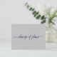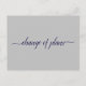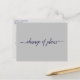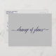 This simple postcard is an elegant and sophisticated way to let your guests know if you are in the unfortunate position of having to alter or postpone your wedding plans. The front is grey with navy blue text reading "change of plans" in elegant script calligraphy, and the back has space for a custom note where you can explain the situation to your guests.