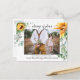 Sunflower and Photo Wedding change of plans - A modern chic handwritten typography message and pale yellow summer sunflowers are featured behind your photo to announce the postponement of your wedding and your new plans. When you need to send a note to your guests - We are all taking social distancing to heart, send this note to let your guests know that while the country is under a social distancing recommendation - your wedding has been delayed - and perhaps offer them updates or a website they can visit for updates. 'Love is Patient' message on the front in handwritten modern calligraphy ... Pre addressed - add your information and photo to this easy to use template -