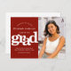 Change plans graduation photo bold typography red invitation postcard