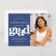 Make sure all your friends and relatives will still be able to celebrate your graduate’s milestone event, regardless of current global unforeseen circumstances. Send out this stunning, simple, modern, personalized photo “Change of Plans” postcard for an event to remember. Bold, graphic, white typography overlays a navy blue background. On the right hand side, add a photo of your choice. Personalize the custom text with your graduate’s name, class year and date information. Your custom message, a navy blue graduation cap icon and your return address adorn the back. Matching invites, thank you cards, cap toppers, napkins, plates and other graduation goodies are also available in this trendy and stylish collection. Make sure their special celebration will still be as festive as originally planned!