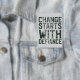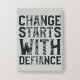 Small but mighty. The “Change Starts With Defiance” button packs a punch with bold typography and a light gear overlay to symbolize action and momentum. Perfect for backpacks, jackets, or activism events. Show the world that real change starts with bold ideas.