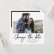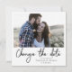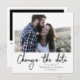 Send a cute, instant photo design for your change the date wedding or party announcements with this typography, modern note. With black handwriting.
