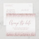 Announce updated details for a Bat Mitzvah Celebration that's been rescheduled, postponed, changed, or delayed with a rose gold pink glitter border postcard with a fun and modern calligraphy script font. Find more in the Paper Grape Zazzle Designer shop, or contact the designer for more customizations.