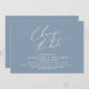 This is the Wedding party invitation Rescheduled, save our new date (postponed / postponement) card (Change the date), in the modern minimal simple clean romantic dusty blue design themed. It is the perfect way to make the event reschedule announcement to your friends and family.