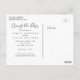 Postponed Announcement with hand lettered white script overlay design photo wedding CHANGE the date announcement card - horizontal. Send out your change the date cards as newly engaged couple to your friends and family using this beautifully, simple save the date postcard with a white handwriting script text overlay design. Design by Elke Clarke© . Replace the sample photo with your own. Add your personal information on the front and on the back.