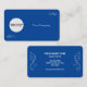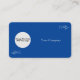 This is a personalized business card template on a blue background. You can change the circle with your company logo, also writing down your company name beside the logo. The objects are customizable, which means that you can resize or reposition them.