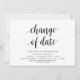 Carte de changement de date. Ceci est l'invitation à la soirée de mariage Réorganisée (reportée / report) carte (Changer la date), dans le thème moderne minimaliste simple et propre, police noire.