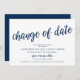 Ceci est une carte d'annonce de mariage reporté (report), avec titre de carte, Changement de date, en police de caractères Navy Blue script, sur un thème de design Moderne Rustique.