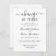 Waouh ! Nous vivons des temps difficiles ! Ne paniquez pas lorsque les choses tournent mal. Il est temps de changer de cap ! Vous aurez besoin d'espace pour vous ressaisir, vous adapter et trouver de belles façons de replanifier et peut-être même réinventer votre fonction. Nous sommes là pour vous ! Ces cartes de report d'événement noir et blanc intemporelles comprennent un message texte fixe dans une police de caractères script chic avec une police de caractères sans serif moderne pour votre message. Convient à toute occasion que vous devez reporter ou replanifier. Faites savoir à vos invités que vous devez reporter l'événement sans perdre votre calme avec ce design classique. Ne soyez pas abattu. Vous avez maintenant le temps de rendre votre nouvelle célébration encore plus conforme à vos rêves !