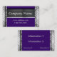 Mettez votre nom de la société et toute autre information sur l'avant et toute autre information sur le dos de ce regard moderne, professionnel, futé, carte de visite d'entreprise. L'arrière - plan est pourpre sur l'avant et le dos qui peuvent facilement être changés. Cliquez sur juste dessus la "personnaliser il" et alors "éditez" et alors "arrière - plan" pour changer la couleur pourpre. Ajoutée est une frontière de cool de motif de plat de diamant avec un regard 3d des deux côtés. Carte simplement belle, classique et chique, unique, promotionnelle pour toutes affaires !