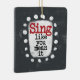 Un joli design de musique typographique qui dit "Chantez comme vous le voulez". Il présente du texte noir et rouge sur un rectangle blanc avec des points blancs amusants et amusants qui l'entourent, le tout sur un arrière - plan gris.