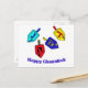 A Happy Chanukah gift featuring 4 dreidels with Hebrew letters which represent A Great Miracle Happened There!