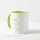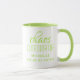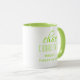Chaos Coordinator Green Typography Personalized Coffee Mug features a simple design of the text "chaos coordinator (your name) fuelled by coffee" in a fun green calligraphy script with your personalized name below. Personalize by editing the text in the text box provided. Perfect for that busy mom, teacher, sports team manager or work boss.