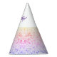 Celebrate with these fun, colorful party hats with purple, pink, yellow faux-glitter on bottom and "Let's Party!" against a white background on top.