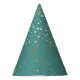 Ce casquette de partie est montré dans une couleur turquoise avec une copie étoiles d'or d'amusement de petites partout il.
