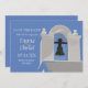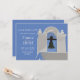 A Save the Date Announcement featuring a crisp, white belfry against a bright blue sky.