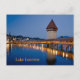 Experience the magical allure of Lucerne at night with this postcard, featuring the iconic Chapel Bridge lit up against the calm waters of Lake Lucerne. The 'Lake Lucerne' text on this postcard can be kept as is, edited, or removed.
