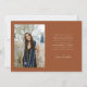 Modern and simple graduation announcement photo card featuring 5 photos on the front and 1 on the back. The hand written script text says "Chapter Complete." Add the graduate's name, information, and message to personalize this card. Terracotta colour.