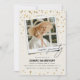 Chapter SEVENTY! Invite friends and family to celebrate a 70th birthday party with these fun modern adult birthday invitations. Design features a photo snap, the text 'Chapter Seventy in serif and calligraphy font, faux gold glitter confetti and an editable birthday template that is easy to customize with your own event details.