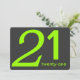 De gros numéros de chaux que vous pouvez customiser pour lire n'importe quel âge que vous voulez sur un arrière - plan gris charbon sur le devant, un dos vert citron avec du texte au charbon que vous pouvez facilement customiser avec les informations de votre fête d'anniversaire sur le dos. Cette invitation d'anniversaire facile à customiser est idéale pour tout âge de 21 à 30e anniversaire, 40e anniversaire, 50e anniversaire, jusqu'au 99e anniversaire!