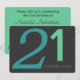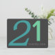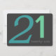 Big blue and mint green numbers that you can customize to read whatever age you want on a charcoal grey background on front, a mint green back with charcoal text that you can easily customize with your birthday party information on back. This easy to customize birthday invitation is great for any age from 21st to 30th birthday, 40th birthday, 50th birthday, right up to the 99th birthday!