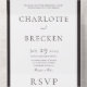ALSO AVAILABLE WITH A QR CODE TO SCAN IN THE RSVP AREA. This simple yet elegant design has a modern look, with a two-toned charcoal black and white background. Personalized All-In-One invitations are a unique combination of both a beautifully printed custom invitation with an easy to tear off perforated RSVP postcard. And they are so easy to use! You simply fold, then seal the back flap with the three included clear stickers, and mail. And when your guests receive your custom invite, they just tear the perforated RSVP Card off and drop it back in the mail to you! Created by Simply Farmhouse Press.