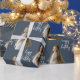 Wrap your love in style with this custom photo collage wrapping paper featuring a dark, muted blue background and personalized “Happy Birthday” text.