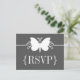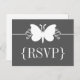 Sweet and simple Butterfly Swirls Wedding Response Postcard featuring a lovely butterfly silhouette and swirl border. This classy RSVP postcard is the perfect pick for the bride wanting something elegant and modern for her wedding. Easy to customize, simply add the details of your very special day in the fields provided. Click on the "Customize It" button to play around with fonts or text colours or add/remove text to give this design your own personal touch.
