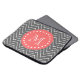 Preppy, modern, charcoal grey and white chevron pattern with coral circle tag and elegant monogram initial you can customize. GraphicsByMimi©
