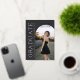 This dark charcoal gray photo graduation announcement features timeless serif typography paired with a modern, editorial layout for a rich and sophisticated look. Soft white lettering and rose gold foil accents highlight the graduate’s name, class year, and school while allowing the main photo to remain the focal point. Fully customizable, this design lets you personalize all text details and upload your own image on the front. The coordinating back includes a matching charcoal background with a four-photo collage template, perfect for additional senior portraits. A refined graduation announcement designed for those who love a classic black and white design but want modern shift to a bit softer palette. © Kimbellished, LLC