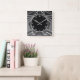 "art deco clock", "art nouveau clock", "dark charcoal grey grey", "1920s geometric symmetrical lines", "stylish sophisticated 1920 style", "black and white", "retro vintage luxurious antique", "elegant line pattern design", "glamourous glam square clock", "classy classic glamour"