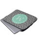 Charcoal Grey Chevron Pattern | Mint Green Monogra Laptop Sleeve