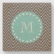 Charcoal Grey Chevron Pattern | Teal Monogram Stone Coaster