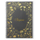 Charcoal Grey & Faux Gold Floral Carnet Journal. Customisez le devant avec ou sans texte.