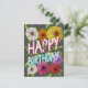 Charcoal Grey Floral Personalized Happy Birthday Postcard