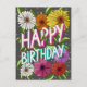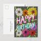 Looking for a floral happy birthday postcard? Look to our Colourful Charcoal Grey Floral Personalized Happy Birthday postcard! Celebrate someone special with this unique, hand-drawn floral birthday postcard. Adorned with vibrant daisies in shades of white, orange, red, pink, yellow, and purple, the design blooms with joy. Delicate white flowers create a soft background, while ‘Happy Birthday’ elegantly intertwines with the blossoms. Personalize it with a message inside or leave it blank for a simple, heartfelt touch.