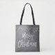 Charcoal Grey or Silver Christmas Script Holiday Tote Bags are perfect for Christmas Gifts.