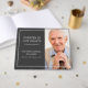 Dark grey funeral guestbook. Add a photo! Forever in our hearts memorial service guestbook in dark grey printed with a photo of your loved one. Ask your friends and family members to share a memory of your loved one in this elegant funeral guestbook in dark grey with a photo on the cover.