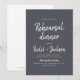 Modern minimalist rehearsal dinner invitations feature handwritten brushy script on charcoal black background, simple and stylish.