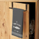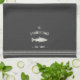 Customize your kitchen with this cute personalized towel featuring your family name or house name and year established in soft ivory lettering accented with a fish illustration on a charcoal grey background.