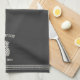 Customize your kitchen with this cute personalized kitchen towel featuring your family name and year established in soft ivory lettering accented with a pineapple illustration on a charcoal grey background.